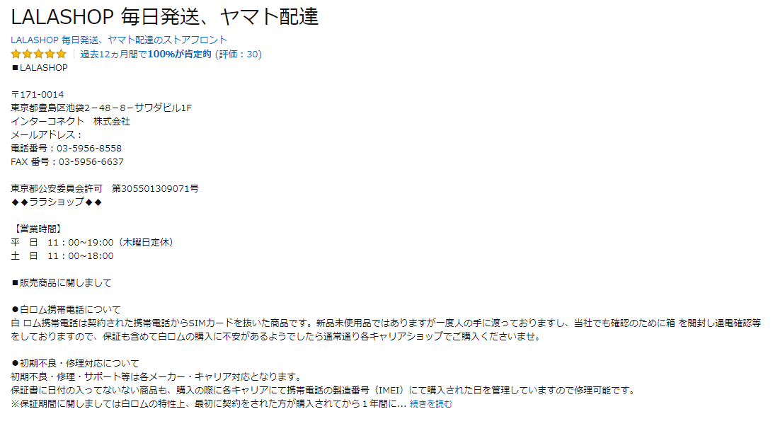 出品者名を押すと、出品者の情報を見ることができます。