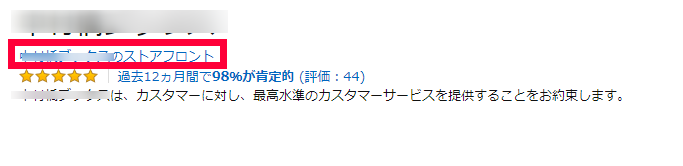 出品者名のストアフロントと書いてあるところを