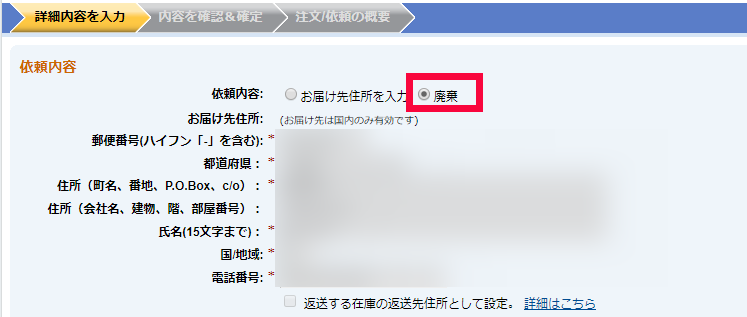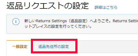 返品先住所の設定を押し、返送したい住所を入力してください。