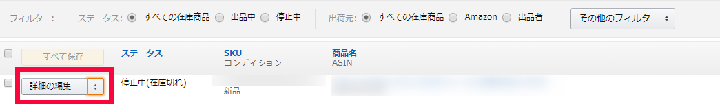 在庫管理から、商品名やasinなどを使って検索しましょう。