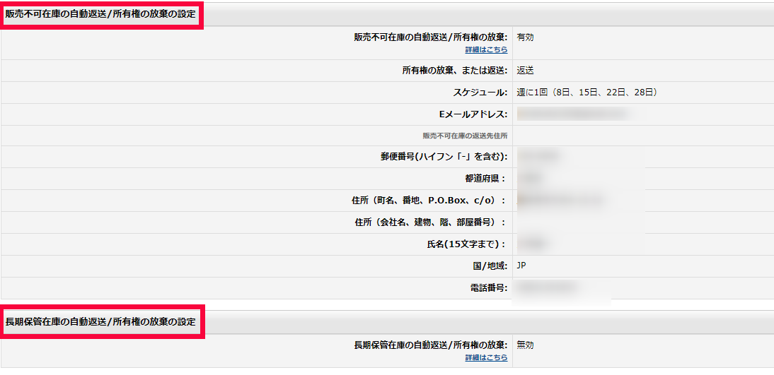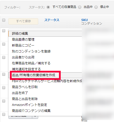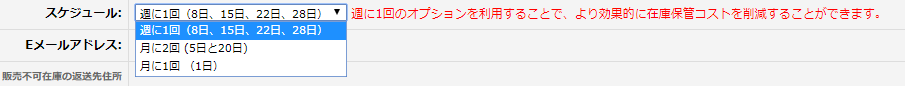 長期在庫保管手数料の対象となる在庫をすべて返送にチェックを入れましょう。