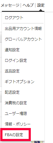 では、セラーセントラルにログインし、FBA設定を押しましょう。