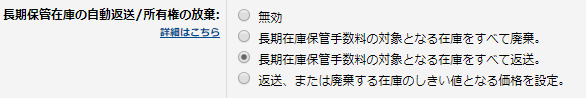 長期保管在庫の自動返送/所有権の放棄の設定も