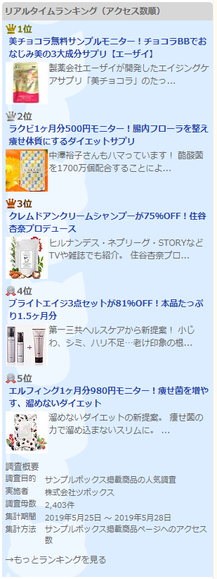 サンプルボックス内にリアルタイムランキング(アクセス数順)と