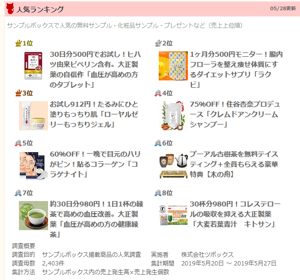 サンプルボックスで紹介される商品は、お一人様一回限りなど、