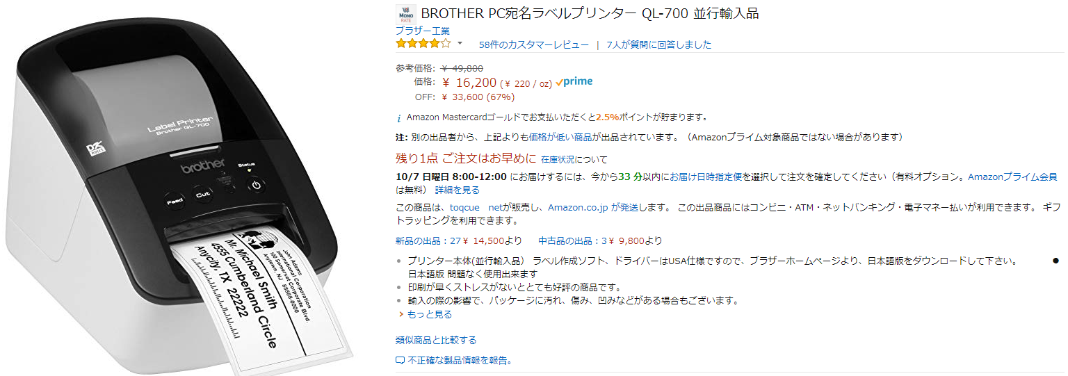 ブラザー(brother )QL-700 か