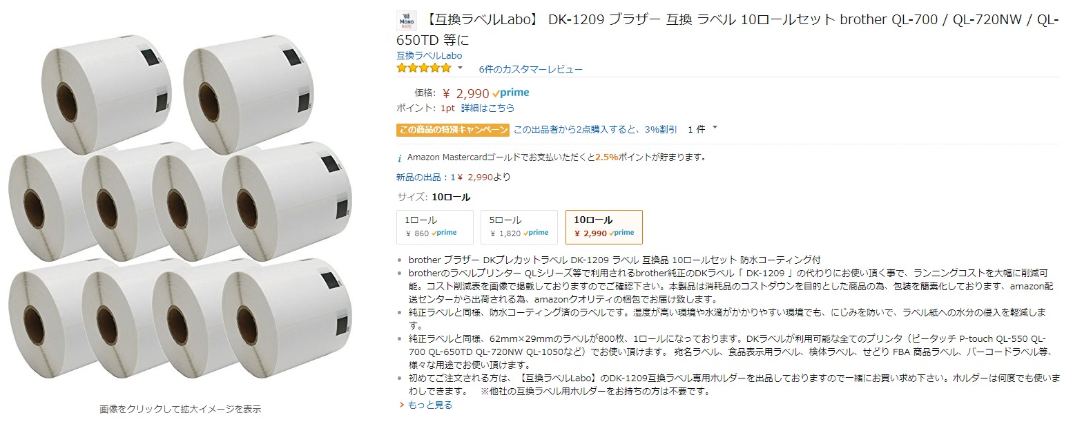 ラベルは互換ラベルを買うと安いです。
