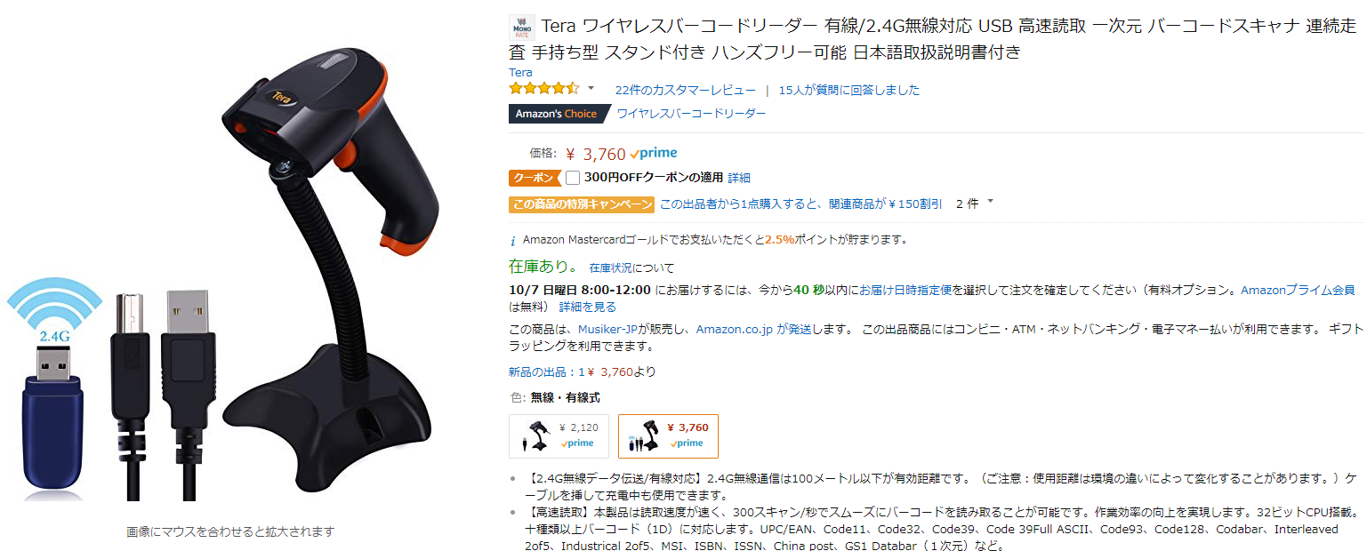 バーコードスキャナーを使って