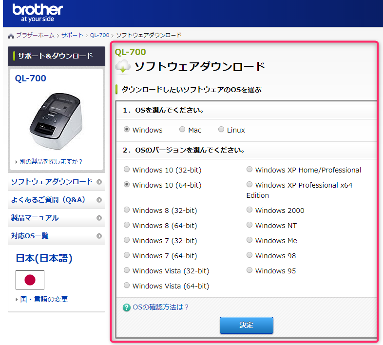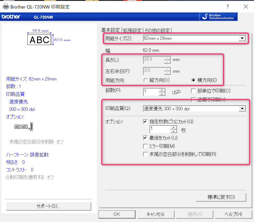 QL700も同じ設定で大丈夫です。