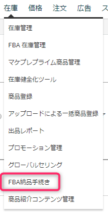 在庫のFBA納品手続きを押します。