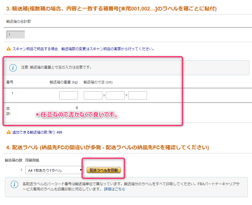 AmazonのFBAに送りたい商品を納品する際に