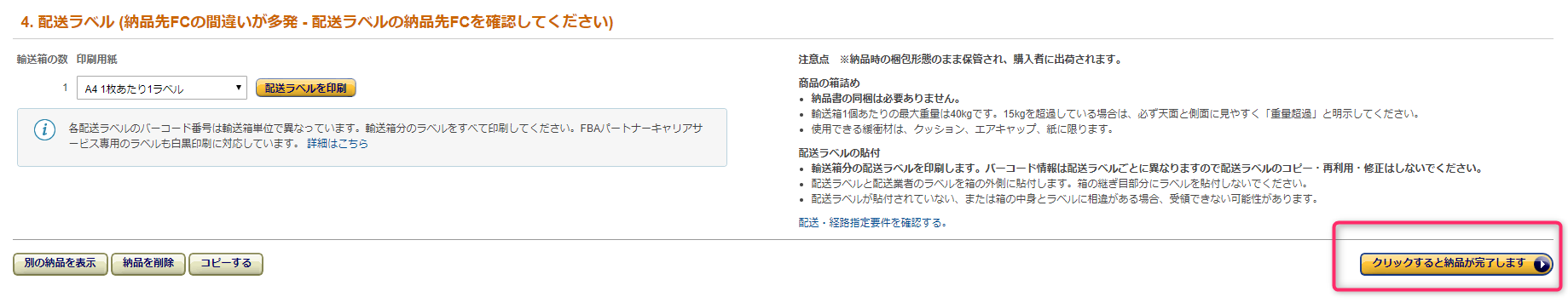 Amazonの出品納品は、