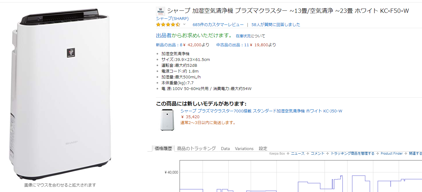 シャープの空気清浄機は1月の新春セール頃から旧製品がかなり安くなります。