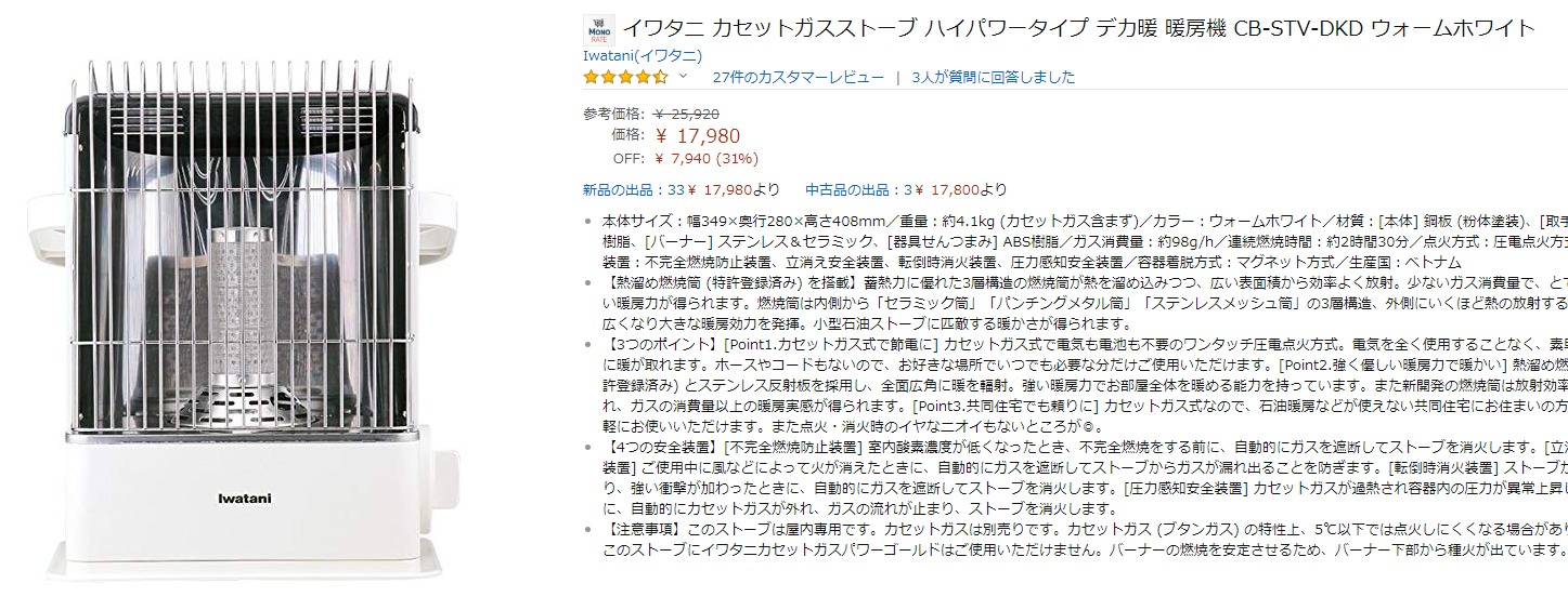 石油ファンヒーター・ストーブはほとんど値崩れしないのでオススメです。