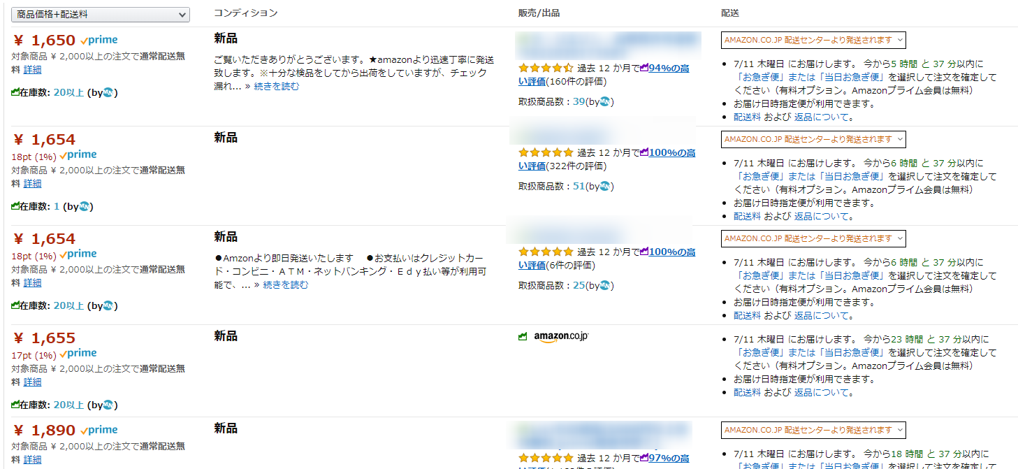 Amazonで出品しているせどらーさんの出品物を見て、