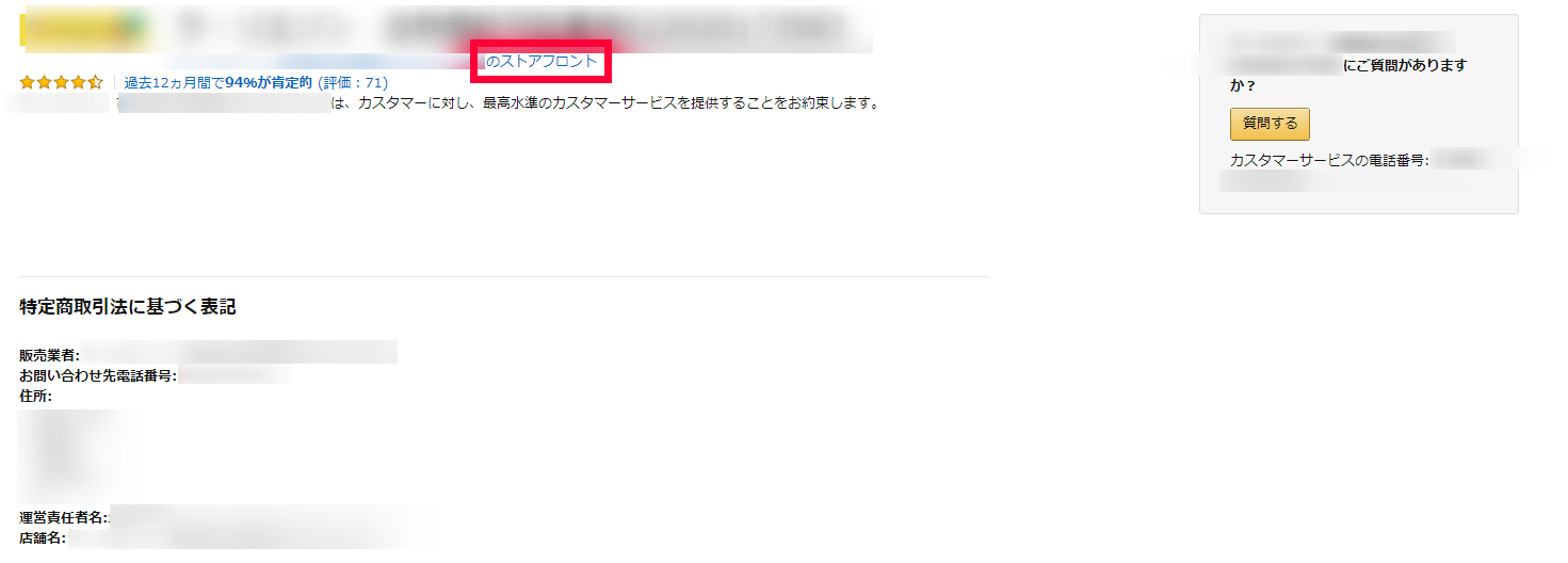 ここでまた出品者名のストアフロントを押します。