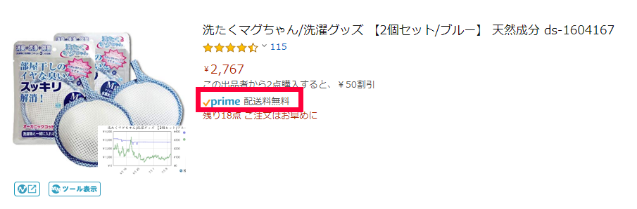 FBAで販売している商品は、プライムマークが付くので