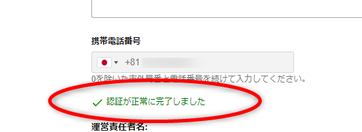 先ほど入力した携帯番号が