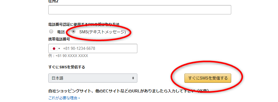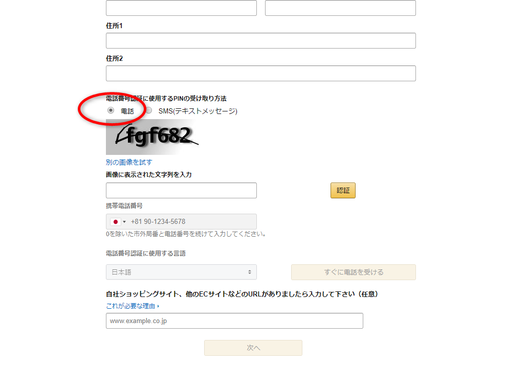 ・「電話番号認証に使用するPINの受け取り方法」