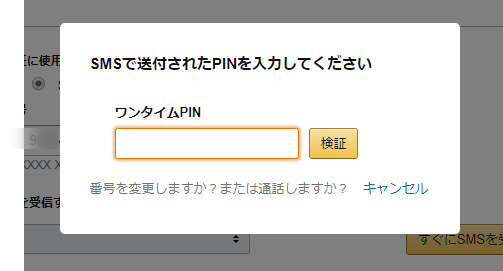 SMSで受信したワンタイムPINを入力、