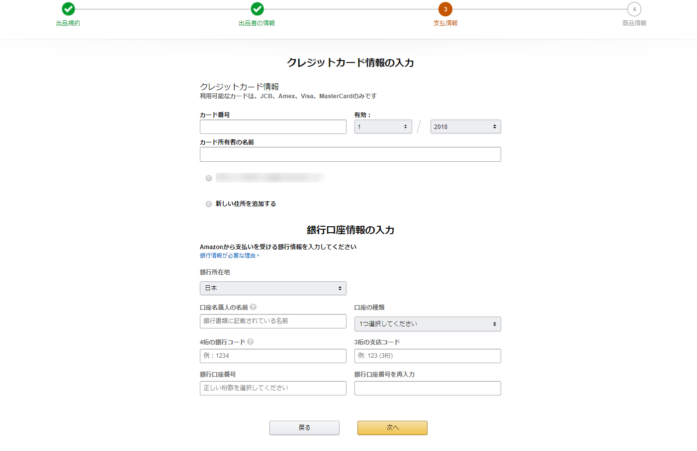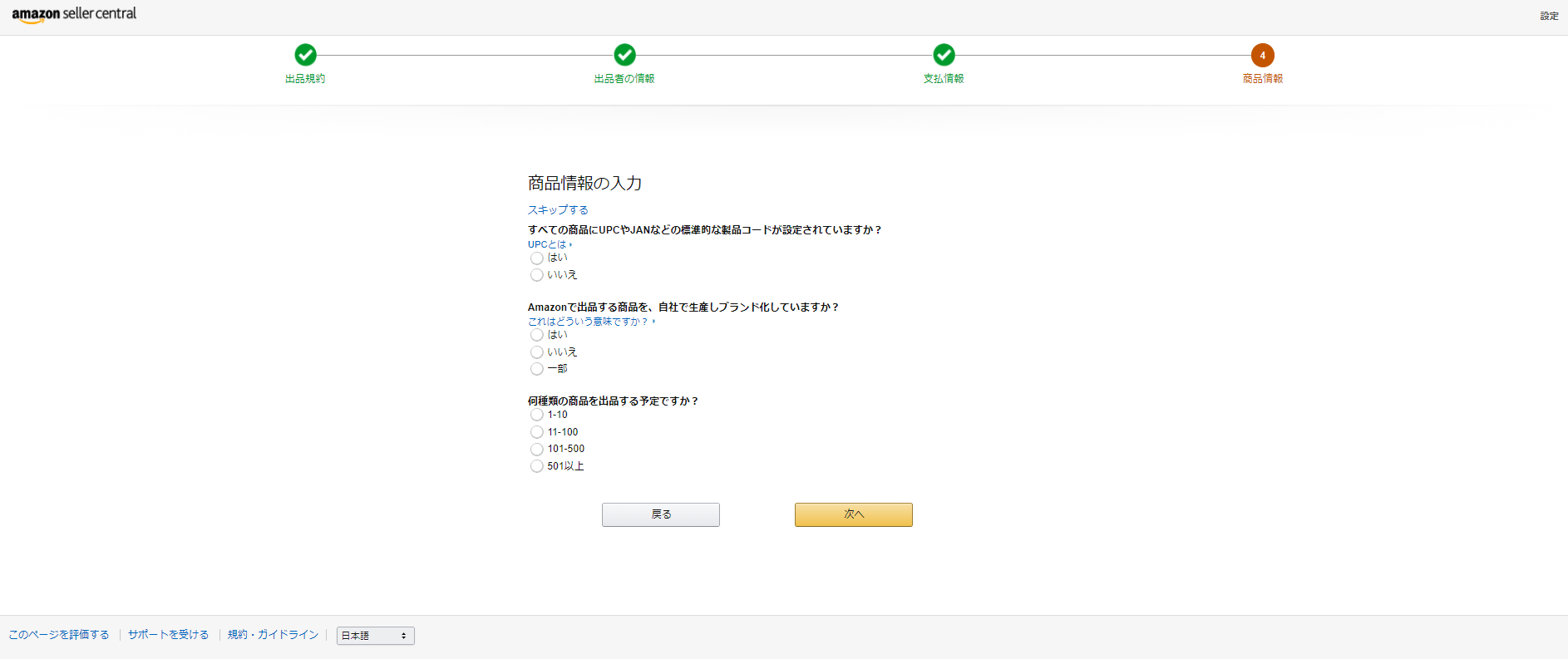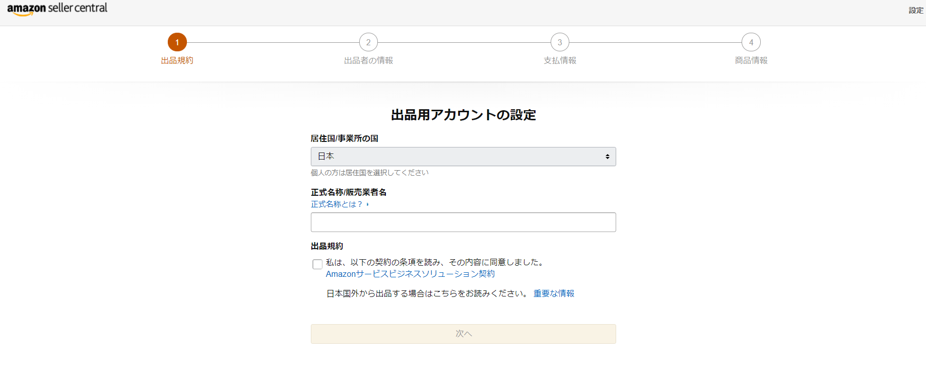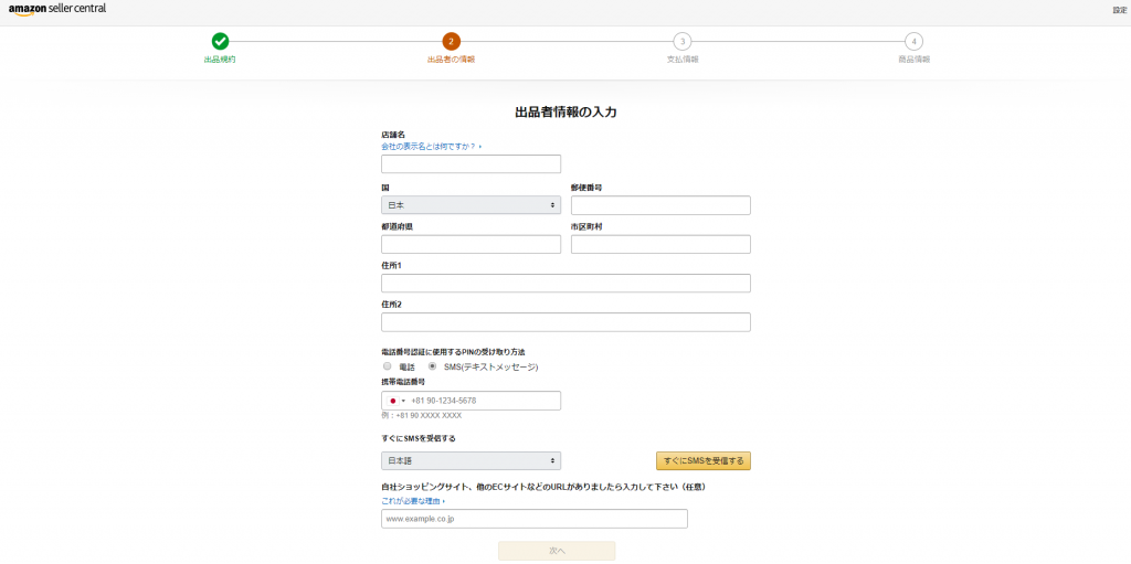Amazon出品用アカウントの登録時に