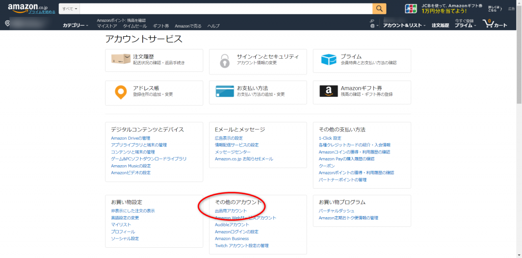 Amazon出品アカウントを作成します。