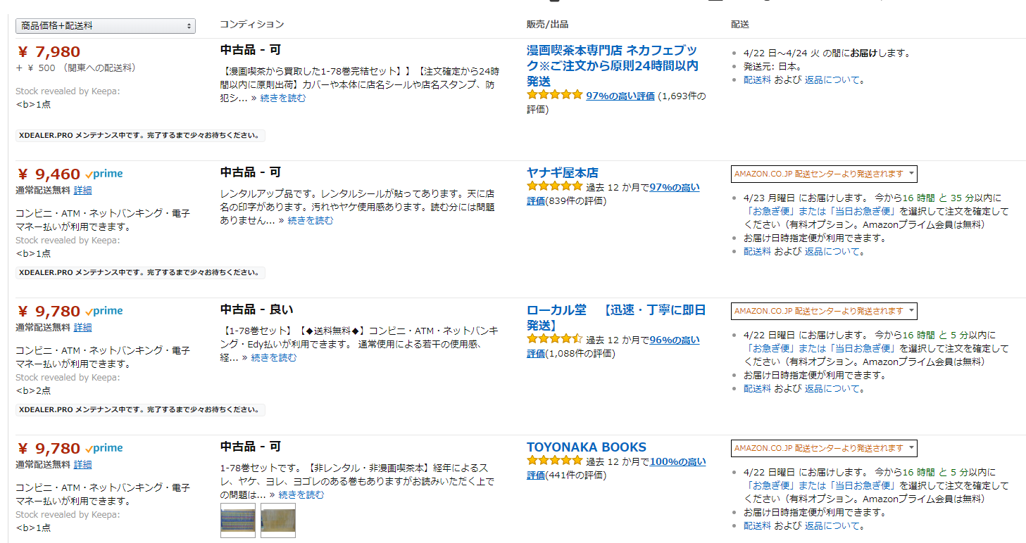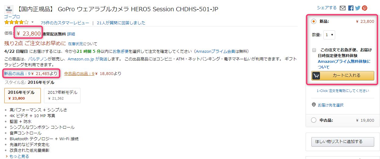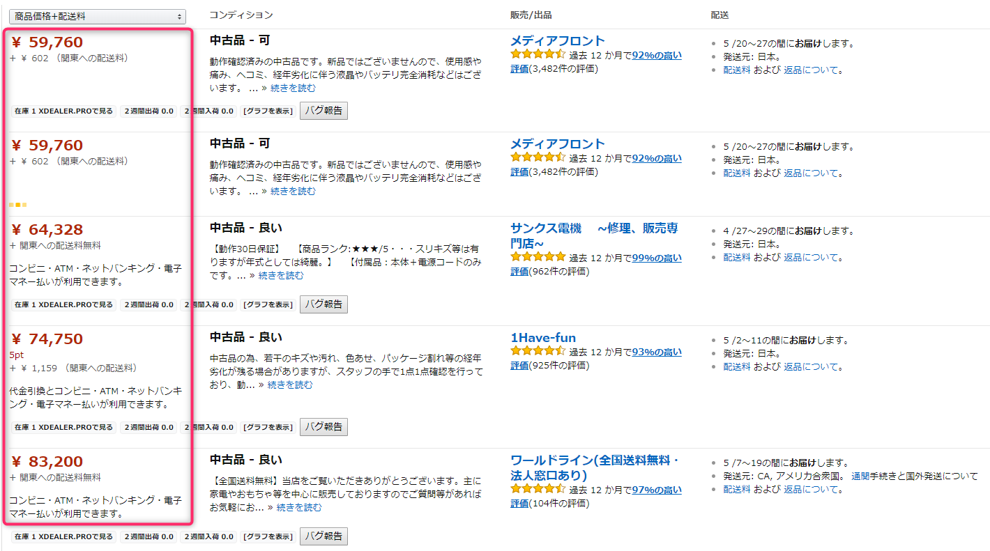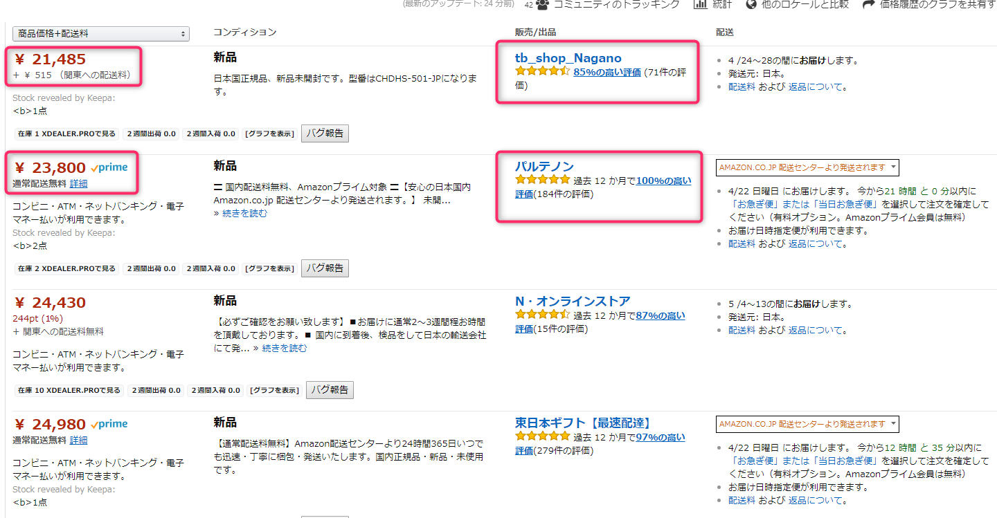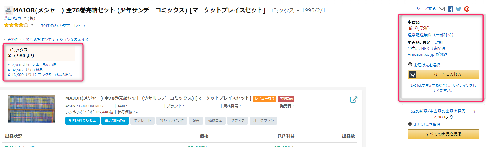 2.新品の出品価格が定価に対して大幅に高くなっていてカートがなくなるパターンの時