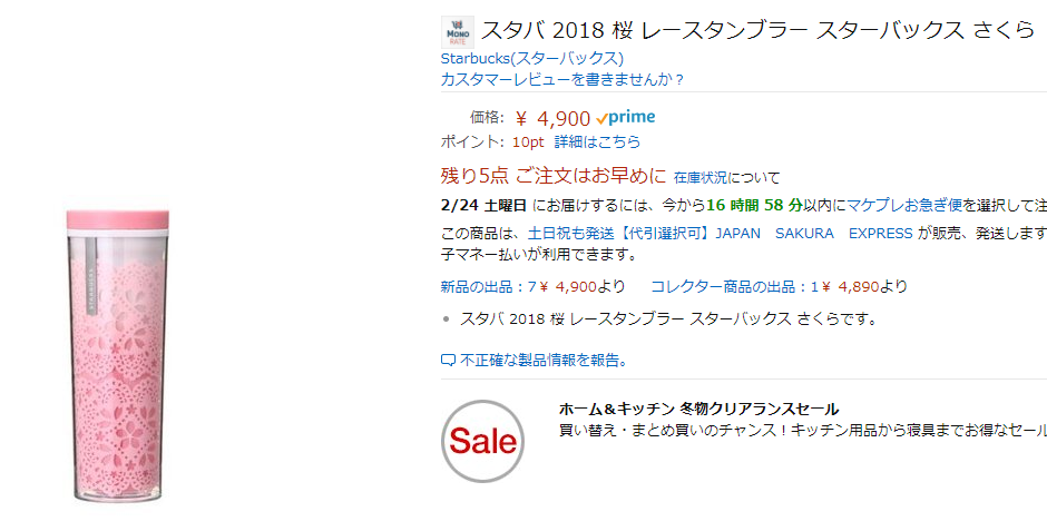 5,『SAKURA2018ステンレスクリエイトユアタンブラークリア473ml』 ¥2,900