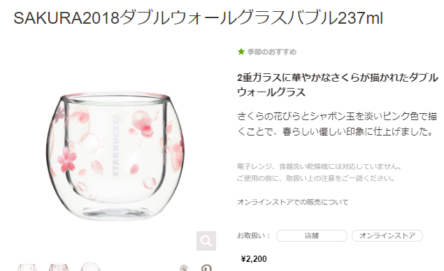 11,『SAKURA2018ダブルウォールグラスバブル237ml』 ¥2,200