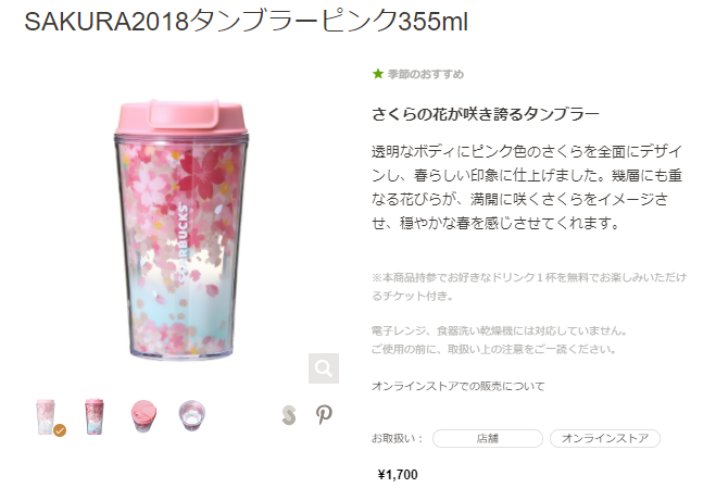 7,『SAKURA2018タンブラーホワイト355ml』 ¥1,700