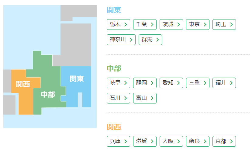 本社が愛知県にあるため、中部地方に店舗が多いです。