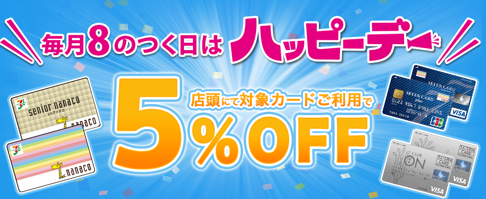 基本的に、毎月5日・20日は5%OFFの日で安くなります。