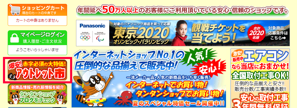 タンタンショップでは、アウトレットが非常に稼ぎやすいので、