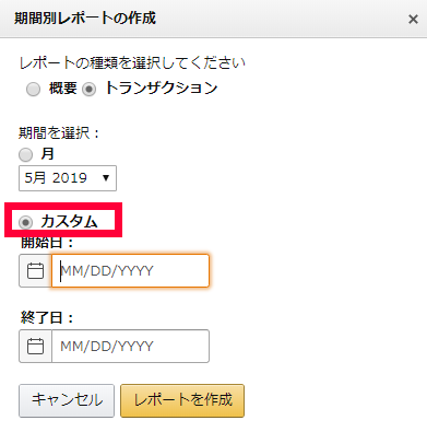 カスタムを押し、開始日を1月1日、終了日を12月31日にして