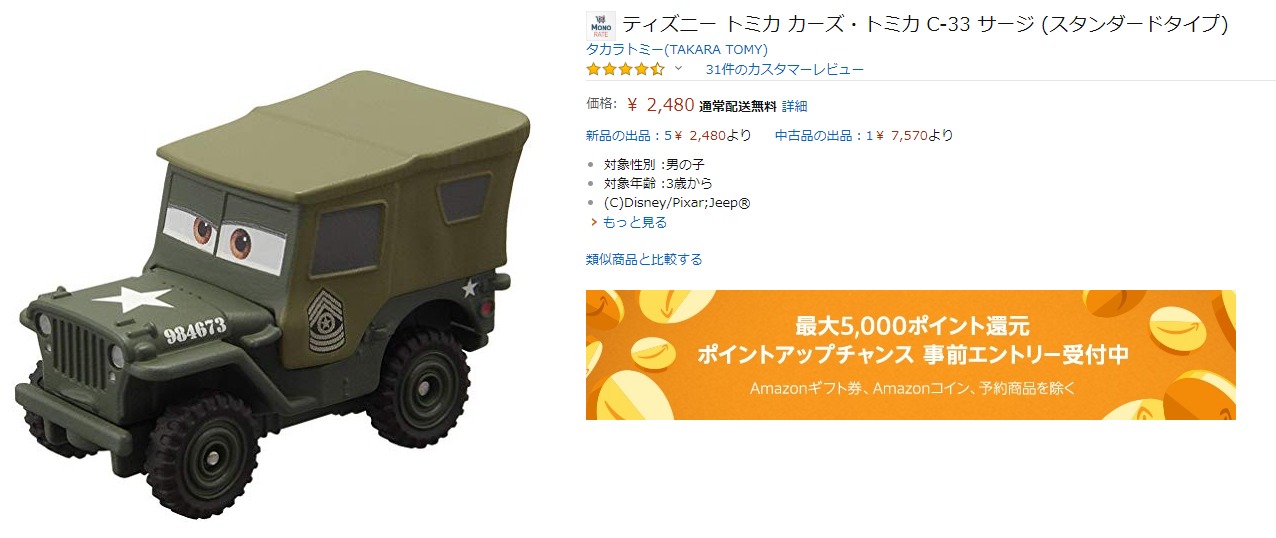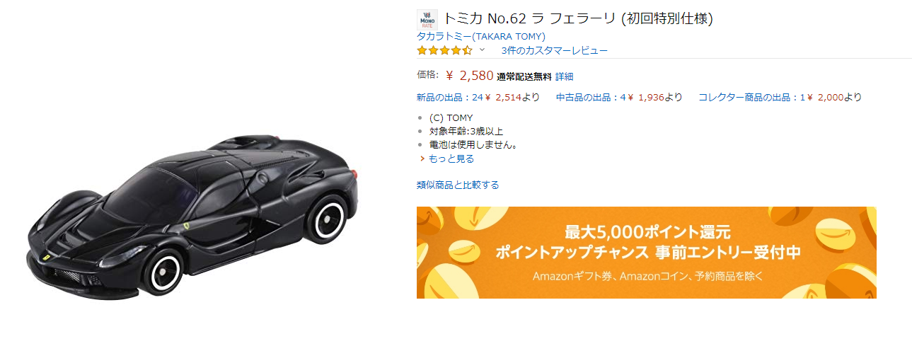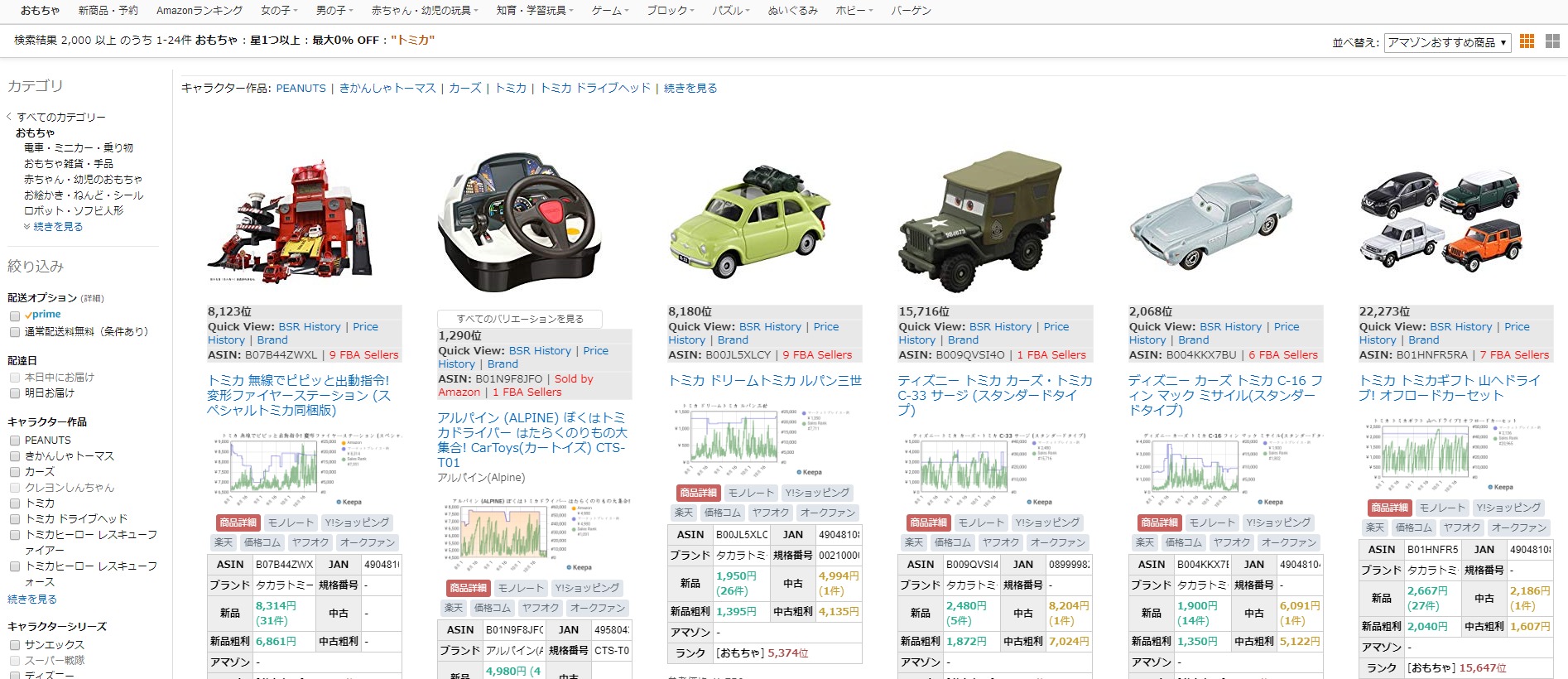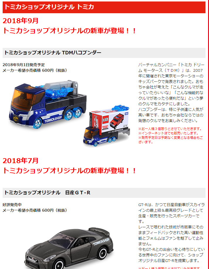 そして、左のカテゴリーのトミカ単品を押しましょう。