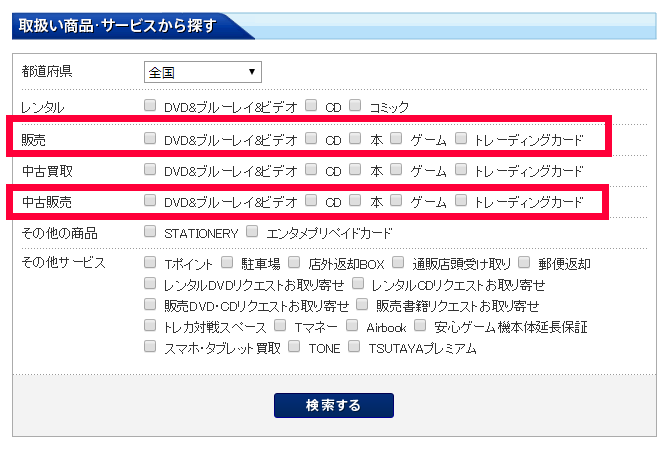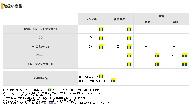 TSUTAYAは、お店によって取扱い商品が違うので、