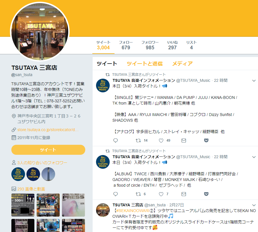 TSUTAYAは店舗ごとにTwitterをしているので