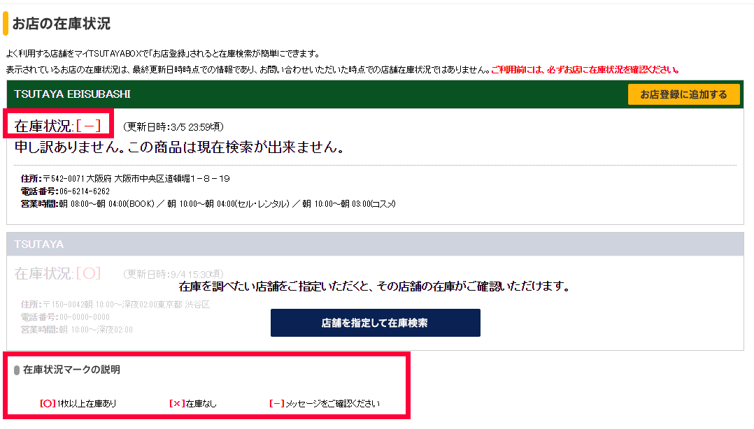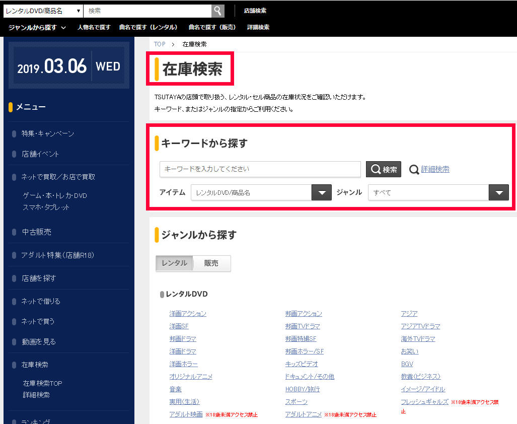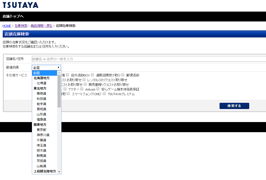 TSUTAYAの在庫検索機能を使って