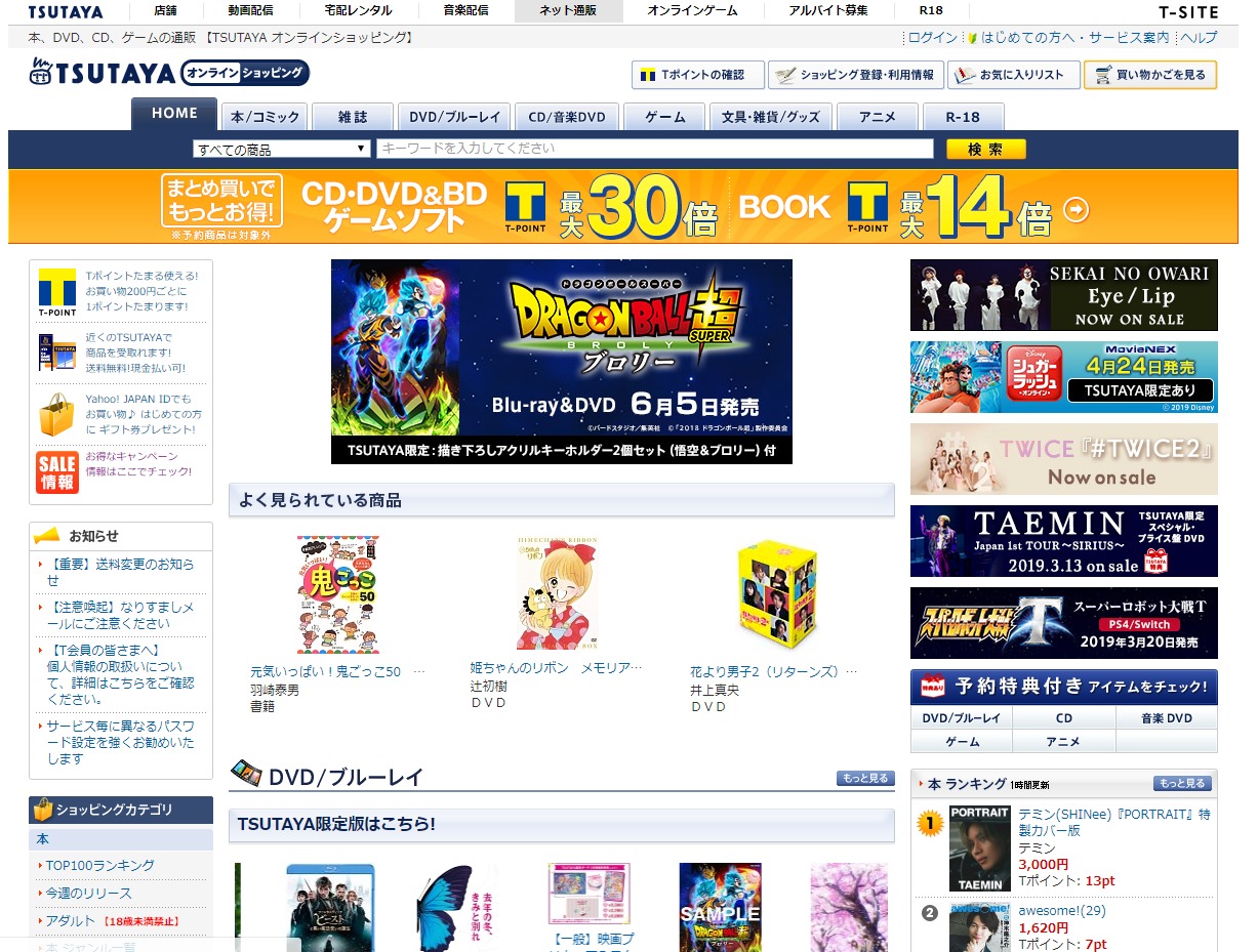 TSUTAYAのオンラインショッピング