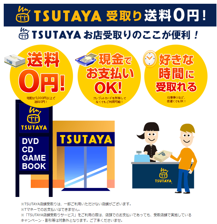 TSUTAYA店舗受け取りも活用すると良いですよ。