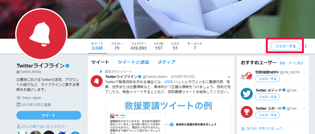 フォローは、フォローするのボタンを押すだけです。