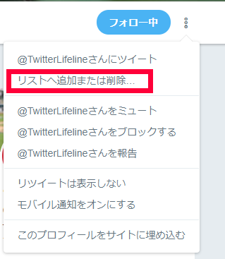 フォローしたら、リストへ追加または削除を押してください。