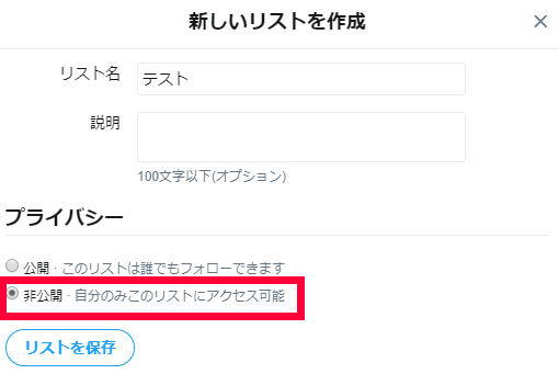 リストを保存のボタンを押します。