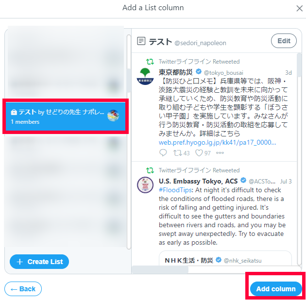 TweetDeck(ツイートデック)上に登録ができました。