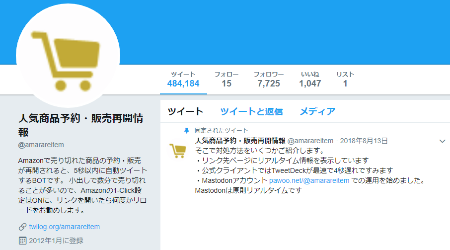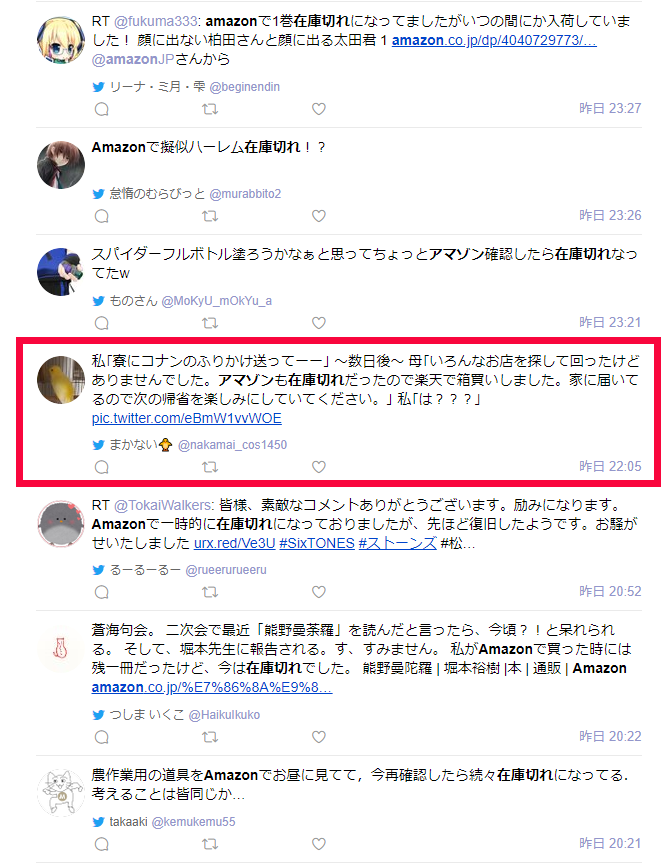 Amazonで在庫切れを呟いてくれている