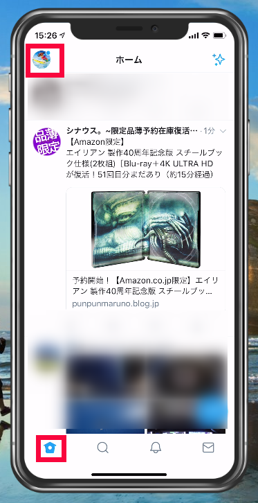 Twitterアプリでホームボタンを押します。