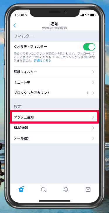 プッシュ通知を押してください。