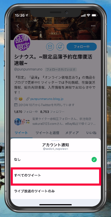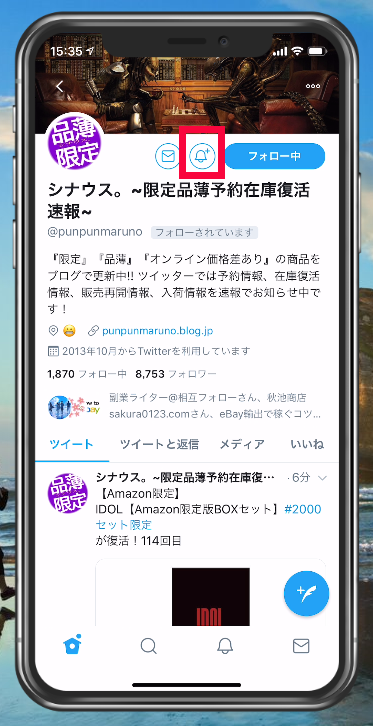 Twitter通知をもらう設定