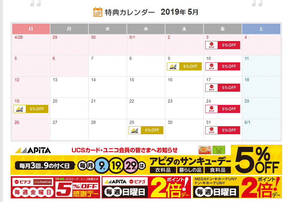 9日、19日、29日の3回、5%OFFになります。