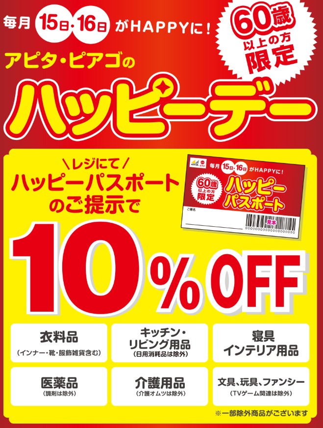 毎月15日、16日に、なんと10%OFFで